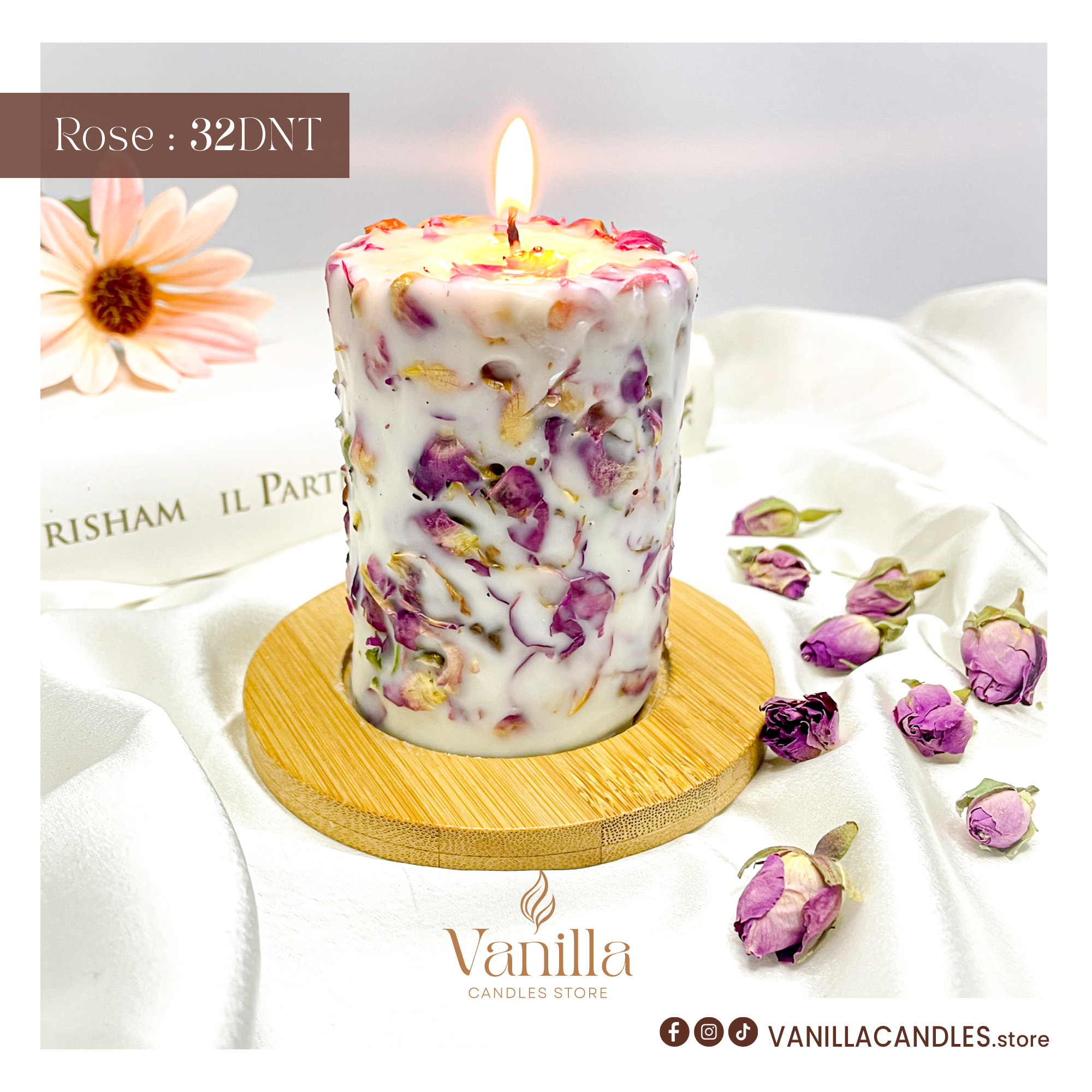 🌸 Bougie Parfumée Cylindrique avec Fleurs Séchées 🌸